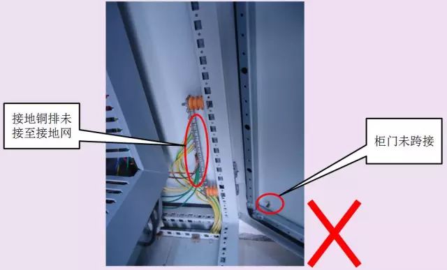 控制柜内主接地铜排接至接地网的铜导线截面积太小。