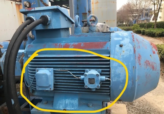 和小电工一起巡检电机,当他发现这台电机时,立即问我:这台不是变频电机,还背着两个接线盒干什么用的?
