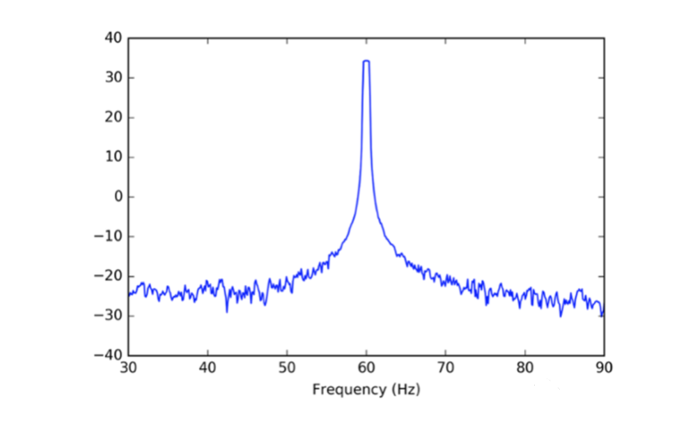 图 1 和图 2 说明了检测转子断条的部分分析。在电源频率附近(在本例中为 60Hz)查看电流的频谱。在健康的电机中,除了 60Hz 尖峰之外,频谱是平坦的。在转子棒断裂的电机中,60Hz 两侧的两个频率处会出现能量尖峰,这是由转子棒断裂引起的。具体频率是电机当前状态和电机参数的函数。
