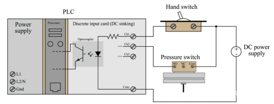 这些术语只有在从传统流动的角度来看电流时才有意义,其中直流电源的正极端子被设想为电流的“源”,电流“漏”到地(直流电源的负极)。在由 PLC 的输出通道驱动分立控制设备或由分立传感设备驱动 PLC 上的输入通道形成的每个电路中,电路中的一个元件必须是源电流,而另一个元件是漏电流。