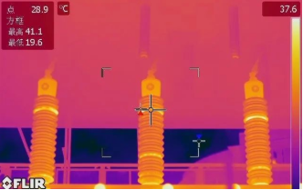 上图为变压器套管末屏发热的情况。变压器套管末屏在安装时如果没有安装到位,会在运行中放电、发热,如果长时间不处理可能会造成事故。但运行中的变压器不方便进行实际设备的检查,而红外测温可以有效进行识别。