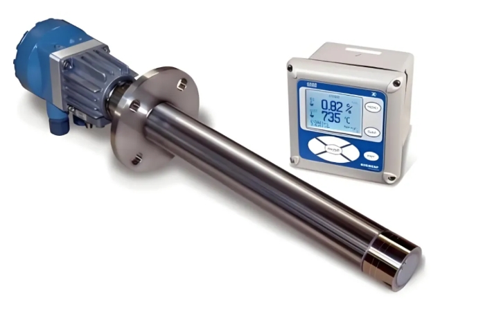 氧化锆氧量计是利用氧化锆固体电解质原理工作,由氧化锆固体电解质做成氧化锆探测器(探头),直接安装在烟道中,具有结构简单、稳定性好、灵敏度高、响应快等特点,测量时仅受温度影响,容易克服,而且输出电信号,便于信号传输与处理,精度比较高,广泛用于燃烧过程热效率控制系统。